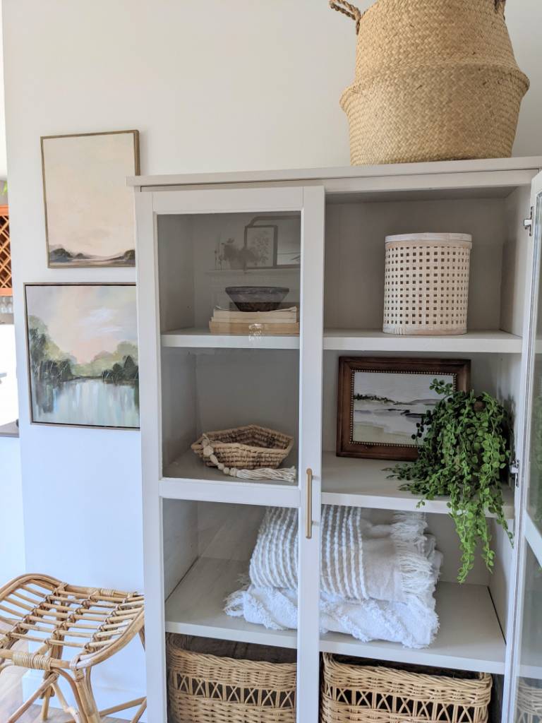 Here are the links to decor/storage items used to fulfill the cabinet: