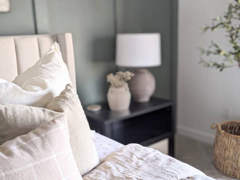 This makes such a difference visually but also for comfort with sleeping! The temps really fluctuate during this time of year, so it can be hard to know what exactly you'll need, heat or AC. But with some lighter sheets you can easily balance the temperature as needed!