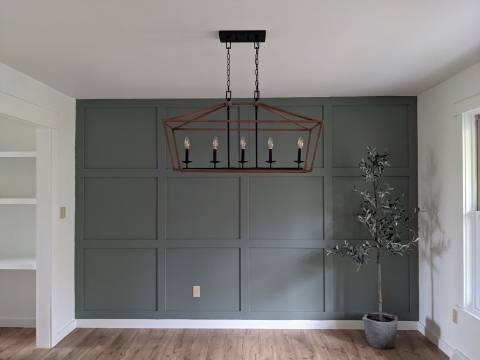 We added the board and batten wall, which was super easy! I am SO glad we decided to add this, it adds so much dimension and character. We live in the woods, so we wanted to add a fun earthy color in here, we went with Retreat by SW. Seriously this color is even more beautiful in person, it's the perfect medium. We like this color so much, we have used it throughout our home! The surrounding walls are painted in Extra White by SW along with the rest of our home! It's such a clean, bright and crispy white.