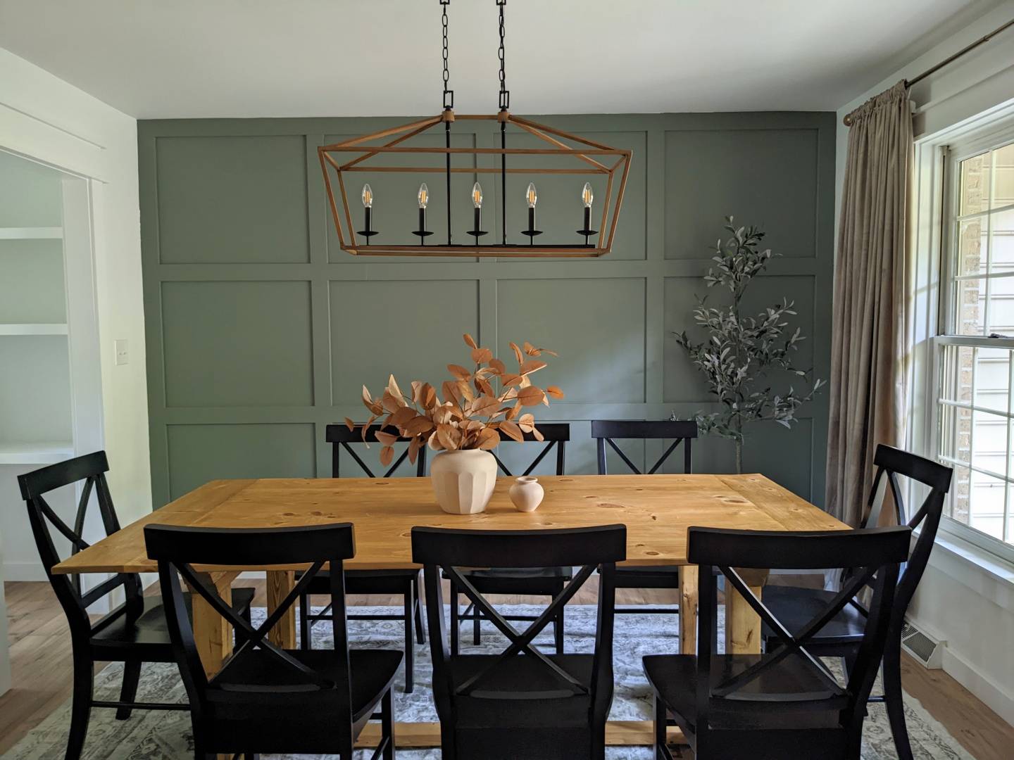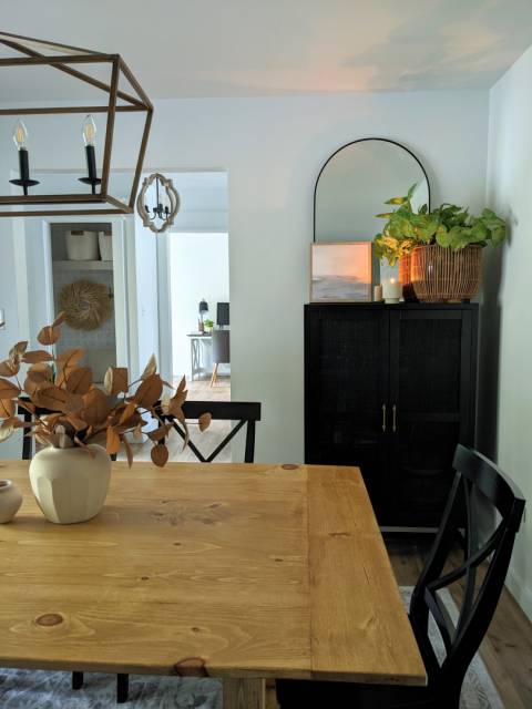 My main goal for this room was to create a simple and clean look! This isn't a huge room but it's also not small, so I was particular with what went into this space. It was just this past spring is when we started the dining room transformation! It took much longer to complete this room than I had anticipated, we ran into some snags with building our table, but here we are today!!