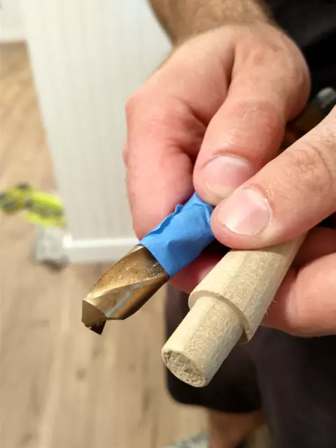 6) Measure according for even placement of shaker pegs, drill hole and glue in place.