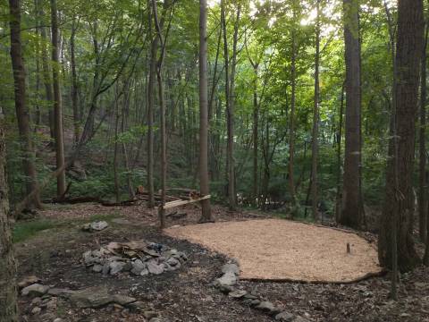 Here is how the area looked before we started. A lonely fire pit with random rocks scattered and limbs everywhere.
