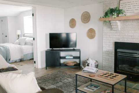 In November, immediately after the Airbnb got approved, we got right to work! Previously the space was coated in off-white walls, old cream outlets, worn gold knobs, oak cabinets, multiple different floor types, a red brick fireplace, "boob" lights everywhere and the list goes on.... This thing needed a major upgrade!!!